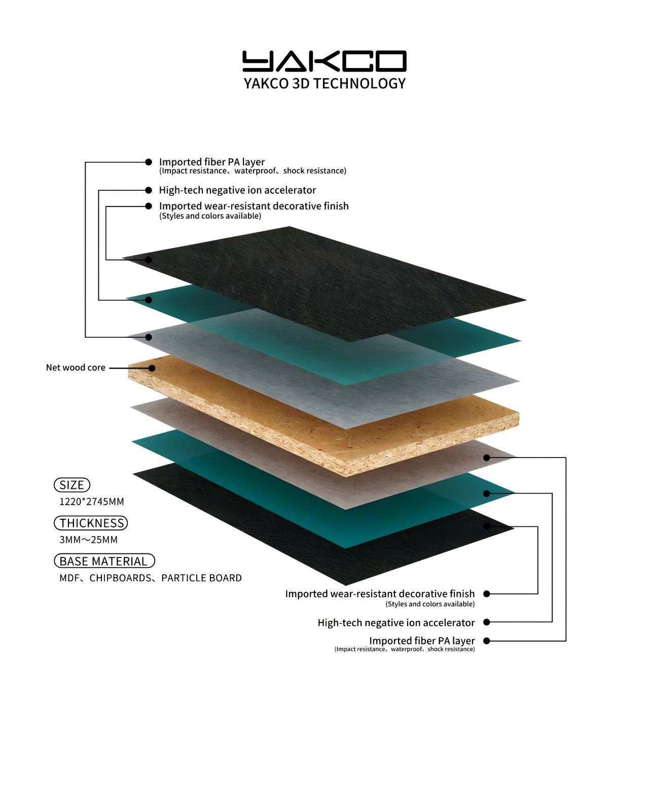 Tehničke prednosti : Yakcova tehnička stručnost u proizvodnji 3D ukrasnih ploča otežava konkurentima oponašanje. Kontinuirano optimiziramo proizvodne procese, poboljšavamo kvalitetu proizvoda i performanse te pružamo snažnu tehničku podršku za stvaranje novih dizajna.